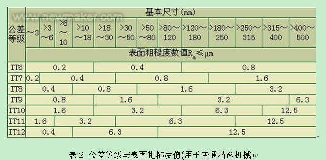 再根據(jù) 公差等級(jí)與表面粗糙度值(用于普通精密機(jī)械)表,如下 如3#所示表格.可以看出.