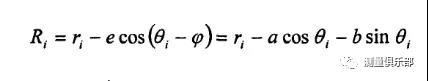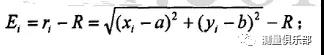 ,其中(a,b)為最小二乘圓的圓心,R為最小二乘圓的半徑。采樣點(diǎn)到最小二乘圓的徑向偏差為: