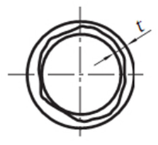 圓度是限制實(shí)際圓對理想圓變動量的一項(xiàng)指標(biāo),其公差帶是以公差值t為半徑差的兩同心圓之間的區(qū)域。