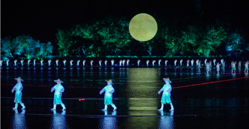 下午,漫步蘇堤,穿林循徑,迎著暴風驟雨,觀看規(guī)?;趾氲乃媳硌荨拔骱∠蟆?,在各色樂器服飾、各類藝術流派的精湛表演中,感受中西結合之美,受益良多。