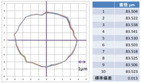 針對孔徑為80um的微細(xì)深孔,F(xiàn)P3030測量其內(nèi)徑的重復(fù)精度在20nm以下: